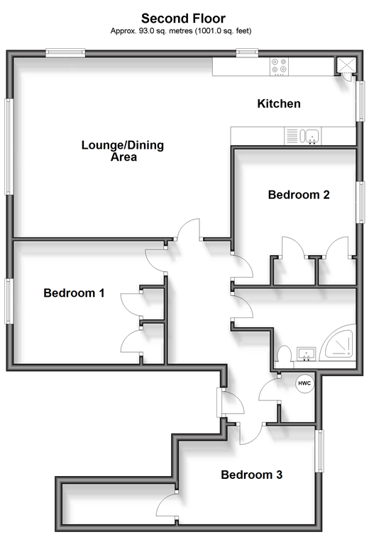 Being both bright and airy this penthouse apartment has a very spacious feel. Its open plan nature will bring the family together and with enviable views you cannot help but admire the vista. A double car barn caters for parking for your needs and with the town so near-by life here will be ever so convenient. Room sizes:HallwayLounge/Diner Area: 19'5 x 16'0 (5.92m x 4.88m)Kitchen Area: 10'11 x 7'11 (3.33m x 2.41m)Bedroom 1: 13'3 x 10'11 (4.04m x 3.33m)Bedroom 2: 12'0 x 10'4 (3.66m x 3.15m)Bedroom 3: 12'2 x 9'2 (3.71m x 2.80m)Walk in Wardrobe: 10'0 x 4'3 (3.05m x 1.30m)Bathroom/Shower Room: 10'3 x 7'4 (3.13m x 2.24m)OUTSIDEDouble Car BarnRear Garden
