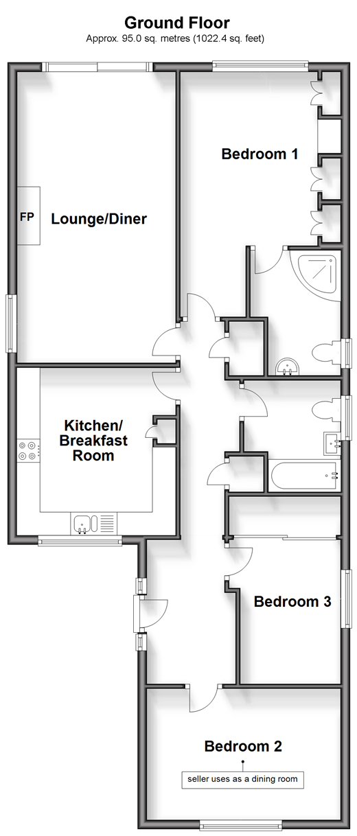 This generous and immaculately presented detached bungalow will blow you away with the sheer space it has to offer. Boasting a spacious 20ft lounge/diner, separate kitchen/breakfast room, double bedrooms, en-suite shower room and low maintenance rear garden. Tucked away in a secluded position with a large driveway and detached double garage. The location has plenty of shops and amenities on your doorstep so you will have everything you need close to hand. Room sizes:Entrance HallKitchen/Breakfast Room: 11'1 x 8'7 (3.38m x 2.62m)Lounge/Diner: 20'1 x 11'1 (6.13m x 3.38m)Bedroom 1: 15'6 x 9'2 (4.73m x 2.80m)En-Suite Shower RoomBedroom 2: 15'0 x 9'9 (4.58m x 2.97m)Bedroom 3: 9'7 x 9'7 (2.92m x 2.92m)BathroomDouble Garage: 17'2 x 16'0 (5.24m x 4.88m)Front GardenSide GardenRear GardenDriveway