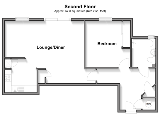 An idea first time buy or investment opportunity, this spacious second floor apartment is located a short distance from the town centre and literal provides the best of both worlds. Room sizes:HallwayLounge/Diner: 19'6 x 15'6 (5.95m x 4.73m) narrowing to 13'8 x 9'0 (4.17m x 2.75m)Kitchen: 8'4 x 6'9 (2.54m x 2.06m)Bedroom: 11'2 x 11'2 (3.41m x 3.41m)BathroomCommunal GroundsAllocated Parking