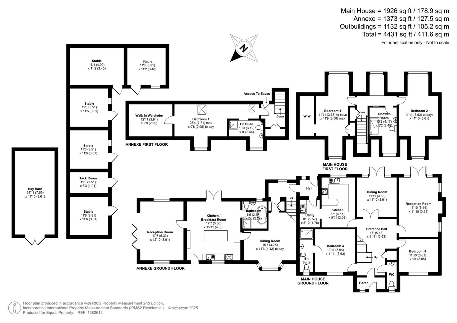 The Stable Complex includes: feature L shaped stable block 5 loose boxes, foaling box, tack room, /feed room, separate hay barn and lapsed planning permission to add a riding arena. A large hard standing area to the front of the stable yard allows parking for up to six vehicles/horse box. The surrounding acreage is mainly pasture divided into 9 post and rail paddocks (with automatic water troughs in all fields )of around 6 acres (*TBV) with the balance of the land laid out as well maintained gardens and grounds adding to the overall attraction of the setting.