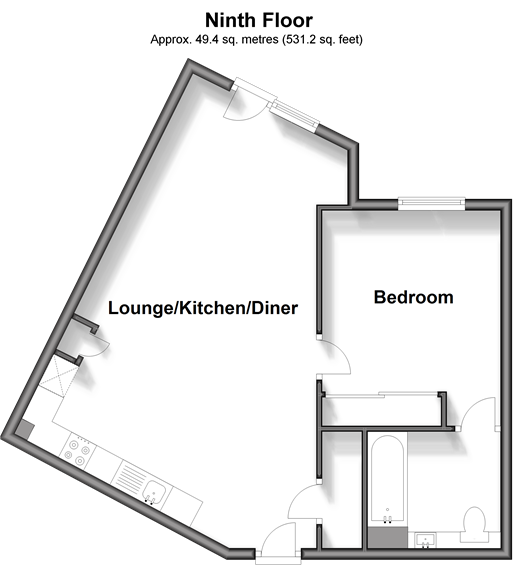 Take the lift from the secure parking are to the 9th floor and enjoy amazing views from this stunning modern apartment. Inside it feels spacious and bright and has the huge benefit of being located next to the entrance to the stunning, multi-tier roof garden. This superb outdoor area offers incredible panoramic views and lots of space to relax. Room sizes:HallwayLounge/Kitchen/Diner: 23'11 x 19'10 (7.29m x 6.05m)Bedroom 1: 10'0 x 7'0 (3.05m x 2.14m)Bathroom: 7'0 x 6'0 (2.14m x 1.83m)Communal Roof TerraceAllocated Parking