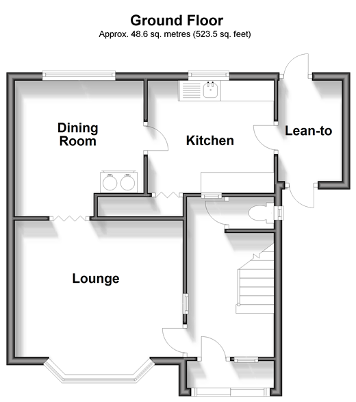 Please refer to the footnote regarding the services and appliances. Room sizes:Entrance HallDownstairs Cloakroom: 3'7 x 3'0 (1.09m x 0.92m)Lounge: 13'9 x 10'7 (4.19m x 3.23m)Dining Room: 11'10 x 10'4 (3.61m x 3.15m)Kitchen: 9'7 x 9'0 (2.92m x 2.75m)Lean ToLandingBedroom 1: 12'5 x 11'4 (3.79m x 3.46m)Bedroom 2: 12'3 x 10'0 (3.74m x 3.05m)Bedroom 3: 8'9 x 8'9 (2.67m x 2.67m)Bathroom: 7'9 x 6'6 (2.36m x 1.98m)Front GardenRear Garden