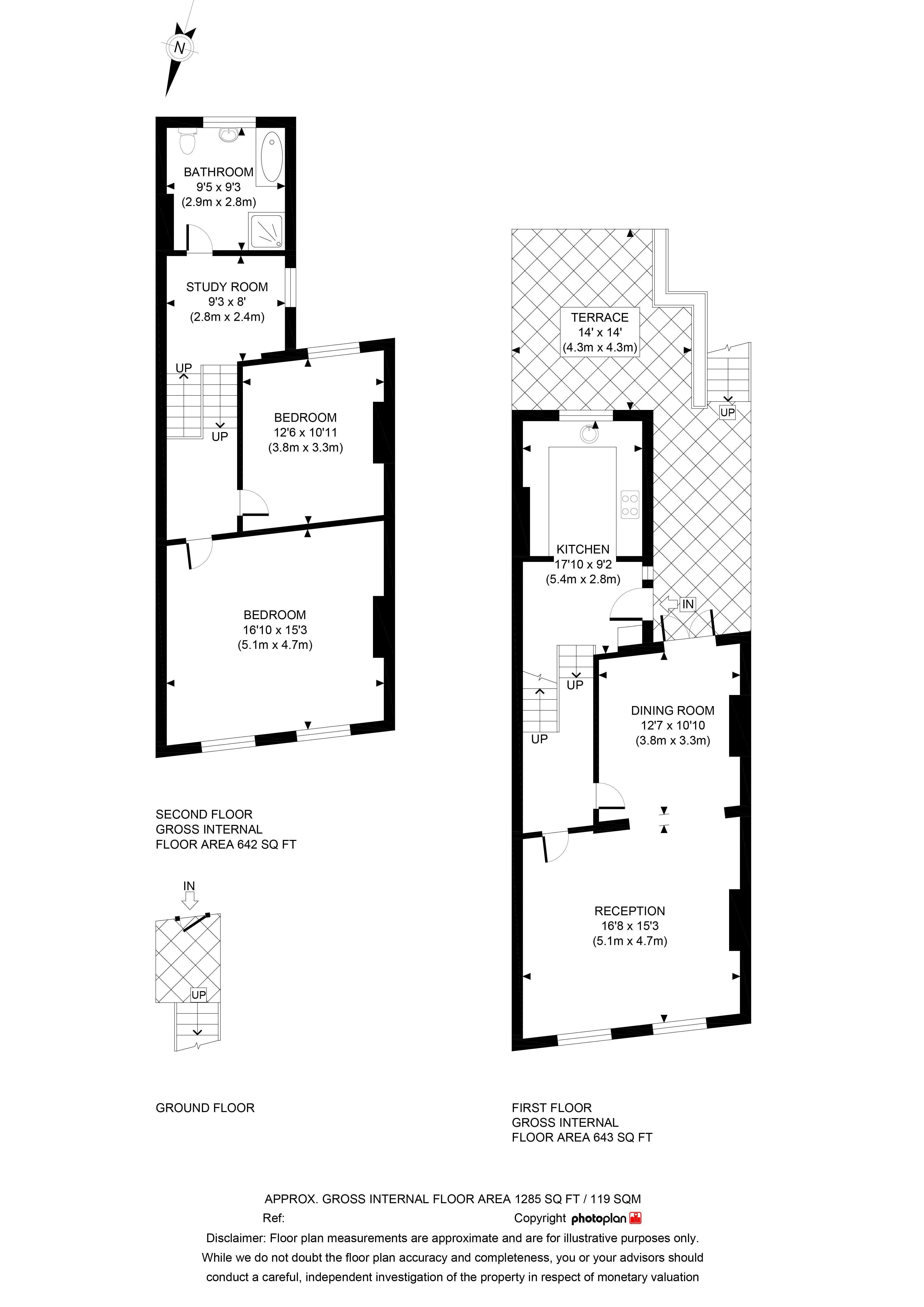 Stunning, spacious two bed maisonette, with high ceilings over multiple floors. The large sitting room has an open fire, and adjacent dining room. Bathroom with separate bath and standalone shower. Two generous double bedrooms, one exceptionally so. Useful study or office area, and wonderful patio garden.