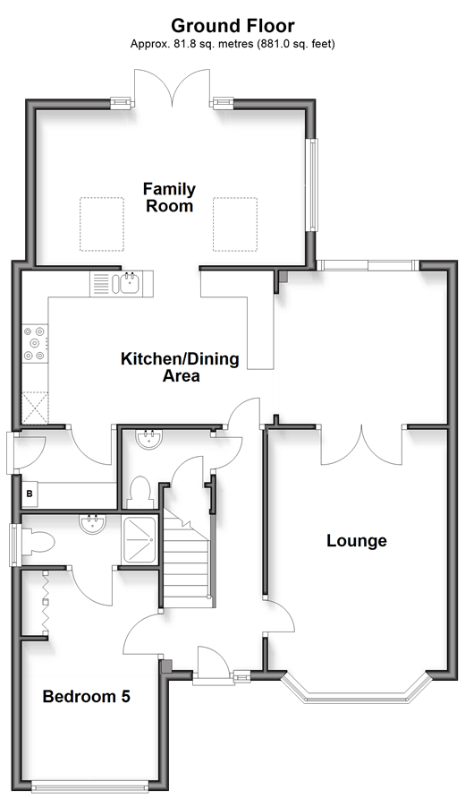 An attractive, extended and improved detached house on the popular Knights Park development. Located on the outskirts of Ashford but still within easy reach of schools, shops, a large supermarket and the local pub. Ashford international train station offers a high speed link to London in just 38 minutes and the M20 Motorway is just a short distance away. The owners have lived here since new and moved in when their children were small. Over the years they have made improvements to the property to include extending at the rear to provide a fabulous family room. In addition they have converted the garage to a fifth bedroom with its own en-suite shower room. This is a perfect house for a family with room to grow. The accommodation is well balanced so there is space to spread out and it also works well for get togethers and parties. The lounge has an appealing bay window and looks out to the front. The dining room and kitchen are at the rear along with the family room overlooking the garden. There is a separate utility room with a courtesy door to the garden. The ground floor bedroom has its own en-suite shower and may be ideal for other uses depending on the new owners requirements. Upstairs there are good size bedrooms, three of which have fitted wardrobes and the main has an en-suite shower room. The loft is part boarded with a ladder and light. Outside the garden is not overlooked has side gate access, a patio area and various shrub and plants borders. There is driveway parking for two vehicles. Now the sellers family has grown up it's time for them to move on and let someone else make this their family home and benefit from this convenient location and all it has to offer. Call today and we'll arrange you an appointment to view. Room sizes:Entrance HallCloakroomBedroom 5: 13'1 x 8'2 (3.99m x 2.49m)En-Suite Shower Room 1Kitchen/Dining Area: 26'4 x 9'5 (8.03m x 2.87m)Utility Room: 5'8 x 5'2 (1.73m x 1.58m)Family Room: 16'6 x 9'6 (5.03m x 2.90m)Lounge: 16'5 x 10'9 (5.01m x 3.28m)LandingBedroom 1: 14'5 x 10'8 (4.40m x 3.25m)En-Suite Shower RoomBedroom 3: 10'8 x 9'7 (3.25m x 2.92m)BathroomBedroom 4: 8'5 x 6'6 (2.57m x 1.98m)Bedroom 2: 14'2 x 8'7 (4.32m x 2.62m)DrivewayFront & Rear Gardens