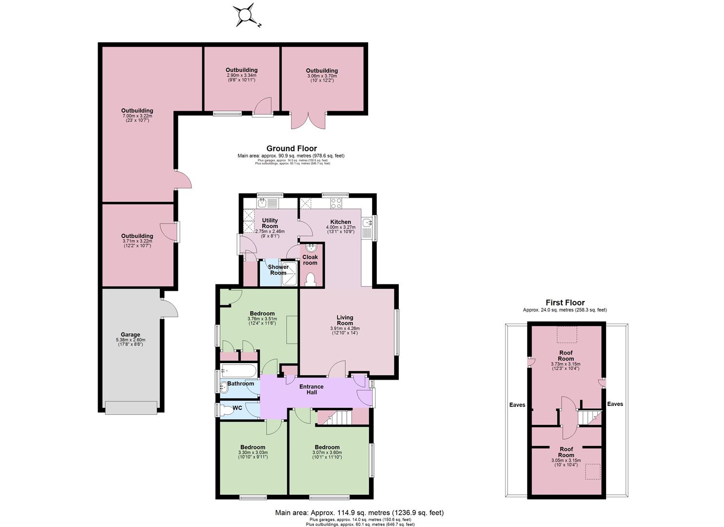 Externally, the property benefits from off-road parking and a single brick garage. Several older outbuildings are also present that could be repaired and repurposed or removed to create an appealing garden.