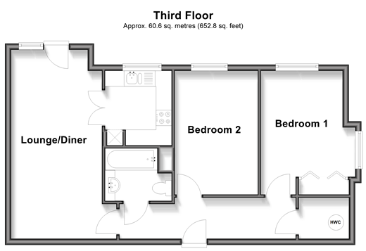 Please refer to the footnote regarding the services and appliances. Room sizes:HallwayLounge/ Diner: 20'4 x 9'6 (6.20m x 2.90m)Kitchen: 8'2 x 6'9 (2.49m x 2.06m)Bedroom 1: 13'1 x 10'11 (3.99m x 3.33m)Bedroom 2: 13'1 x 8'7 (3.99m x 2.62m)