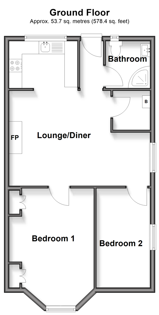 Please refer to the footnote regarding the services and appliances. Room sizes:Entrance HallwayBathroom: 5'9 x 5'6 (1.75m x 1.68m)Utility/Storage Cupboard: 4'9 x 4'8 (1.45m x 1.42m)Lounge/Diner: 17'8 x 12'3 (5.39m x 3.74m)Kitchen: 8'6 x 5'6 (2.59m x 1.68m)Bedroom 1: 14'9 x 10'8 (4.50m x 3.25m)Bedroom 2: 12'4 x 6'7 (3.76m x 2.01m)Garden to Rear