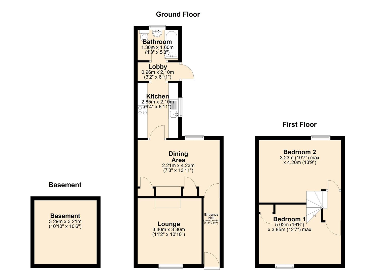 The ground floor comprises two separate reception rooms, providing flexible living and dining areas, along with a fitted kitchen and a family bathroom. The property also benefits from a useful basement, ideal for storage or additional space.