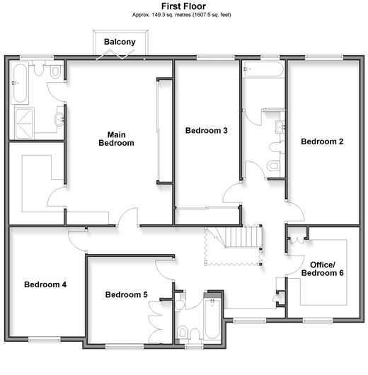 Room sizes:Reception HallShower RoomSnug: 10'9 x 9'5 (3.28m x 2.87m)Kitchen/Diner: 27'1 (8.26m) narrowing to 21'3 (6.48m) x 23'0 (7.02m)Sitting Room: 33'4 x 11'7 (10.17m x 3.53m)Utility Room: 10'0 x 9'6 (3.05m x 2.90m)Gym: 13'6 x 10'6 (4.12m x 3.20m)Study: 11'7 x 9'8 (3.53m x 2.95m)FIRST FLOORLandingBedroom 3: 18'5 up to fitted wardrobes x 8'4 (5.62m x 2.54m)Bath/Shower Room: 15'1 x 5'5 (4.60m x 1.65m)Bedroom 2: 21'4 x 9'3 (6.51m x 2.82m)Office/Bedroom 6: 11'7 x 9'3 (3.53m x 2.82m)BathroomBedroom 5: 11'1 x 10'9 (3.38m x 3.28m)Bedroom 4: 13'6 x 10'0 (4.12m x 3.05m)Main Bedroom: 21'3 x 13'7 into fitted wardrobes (6.48m x 4.14m)Dressing RoomEn Suite Bath/Shower Room: 10'7 x 7'7 (3.23m x 2.31m)BalconyOUTBUILDINGGarage: 17'4 x 17'2 (5.29m x 5.24m)OUTSIDERear GardenDrivewayOrchardPaddock/Field