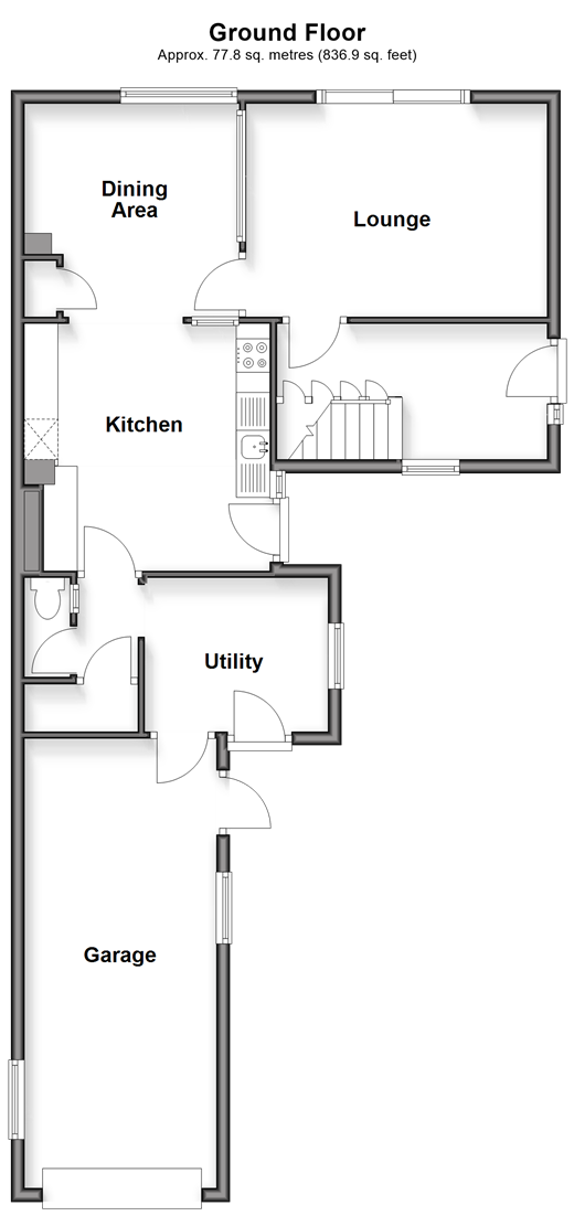 Please refer to the footnote regarding the services and appliances. Room sizes:Entrance HallLounge: 14'9 x 10'6 (4.50m x 3.20m)Dining Area: 11'6 x 10'6 (3.51m x 3.20m)Kitchen: 12'0 x 11'11 (3.66m x 3.63m)Utility: 9'0 x 7'6 (2.75m x 2.29m)ToiletLandingBedroom 1: 11'11 x 10'6 (3.63m x 3.20m)Bedroom 2: 13'4 x 10'6 (4.07m x 3.20m)Bedroom 3: 8'3 x 6'5 (2.52m x 1.96m)Family BathroomFront and Rear GardensGarage and Driveway to Rear