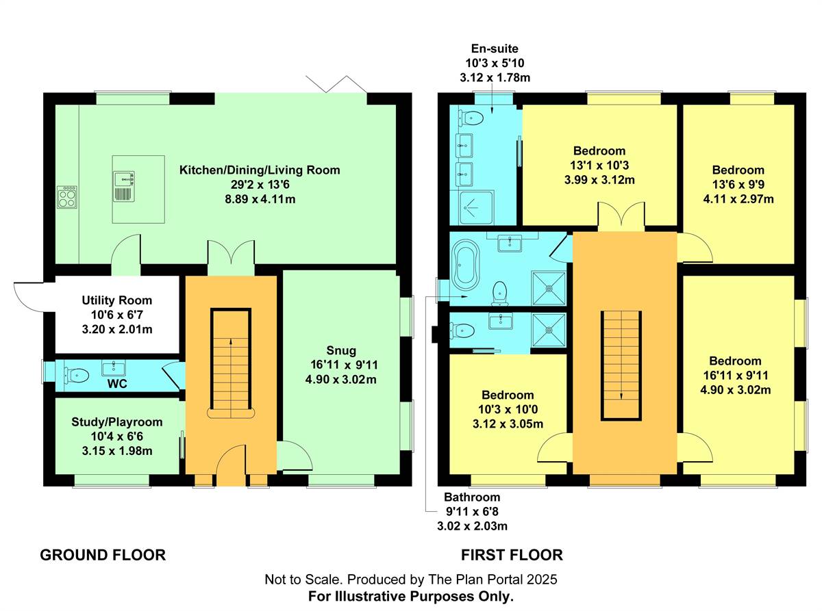 Step through the front door into a large entrance hall, where a striking central staircase creates an immediate sense of grandeur and light. At the heart of the home is an expansive open-plan kitchen/dining/living area, ideal for hosting or relaxing with the family, with seamless access to the rear garden. A utility and separate cloakroom add to the convenience of the property, while a versatile playroom/study offers additional space for work along with a separate snug room.