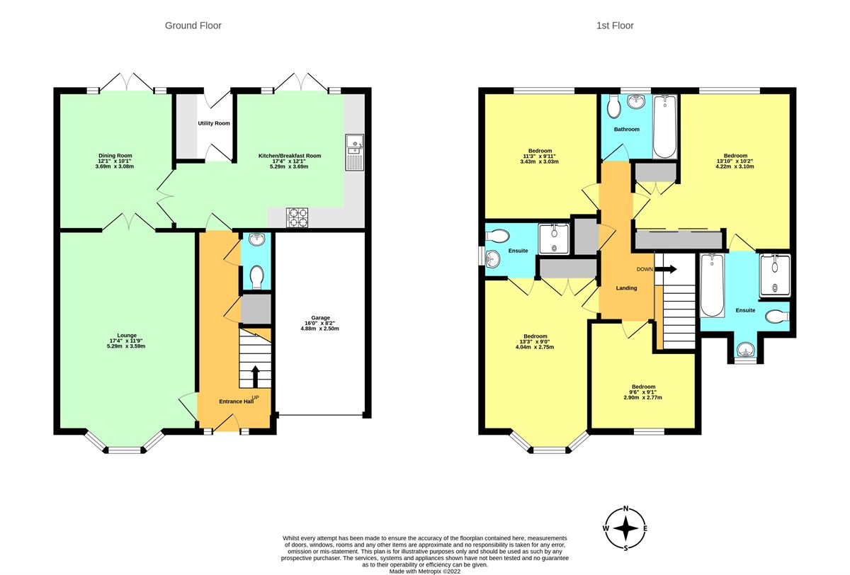 The first floor presents four bedrooms (two with en-suite) and a family bathroom.