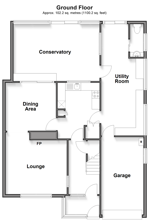 Please refer to the footnote regarding the services and appliances. Room sizes:HallwayLounge: 13'0 x 11'4 (3.97m x 3.46m)Dining Room: 10'9 x 10'1 (3.28m x 3.08m)Conservatory: 18'1 x 12'1 (5.52m x 3.69m)Kitchen: 11'8 x 8'7 (3.56m x 2.62m)Utility Area: 23'5 x 9'2 (7.14m x 2.80m)CloakroomLandingBathroom: 8'7 x 5'5 (2.62m x 1.65m)Bedroom 2: 10'8 x 10'3 (3.25m x 3.13m)Bedroom 1: 11'1 x 10'8 (3.38m x 3.25m)Bedroom 3: 8'8 x 8'4 (2.64m x 2.54m)Front & Rear GardensGarage: 16'8 x 9'1 (5.08m x 2.77m)Driveway