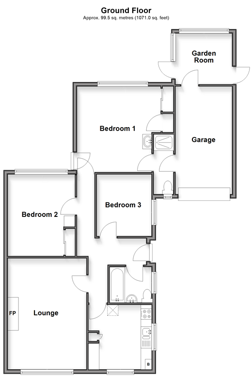 Please refer to the footnote regarding the services and appliances. Room sizes:Entrance HallLounge: 16'9 (5.11m) x 11'11 (3.63m) narrowing to 10'9 (3.28m)Kitchen/Breakfast Room: 9'10 x 9'7 (3.00m x 2.92m)Bedroom 1: 13'4 (4.07m) narrowing to 11'11 (3.63m) x 13'0 (3.97m)En-Suite Shower RoomBedroom 2: 12'4 x 10'2 (3.76m x 3.10m)Bedroom 3: 9'2 x 8'3 (2.80m x 2.52m)Bathroom: 6'4 x 5'6 (1.93m x 1.68m)Garden Room: 8'10 x 7'8 (2.69m x 2.34m)Off Road ParkingGarage: 17'4 x 8'6 (5.29m x 2.59m)Front & Rear Gardens