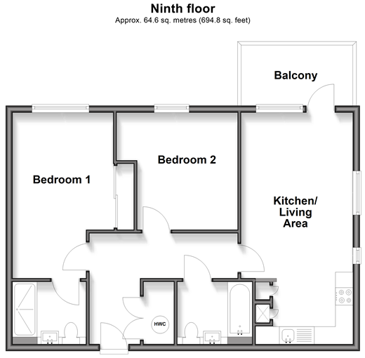 This ninth floor, chain free apartment is situated on a beautifully landscaped waterside development, enjoys stunning river and marina views, priced to sell. Room sizes:Entrance HallBedroom 1: 15'1 x 9'3 (4.60m x 2.82m)En-suite Shower RoomBedroom 2: 11'3 x 11'1 (3.43m x 3.38m)Kitchen/Living Area: 22'6 (6.86m) x 11'9 (3.58m) narrowing to 10'5 (3.18m)BalconyBathroomAllocated Parking