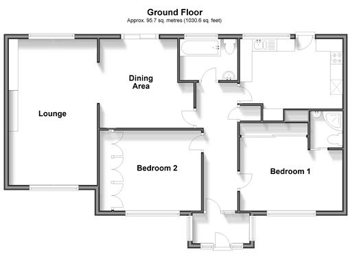 Please refer to the footnote regarding the services and appliances. Room sizes:PorchEntrance HallBedroom 1: 11'11 x 10'11 (3.63m x 3.33m)En-suite Shower RoomKitchen: 13'9 x 9'3 (4.19m x 2.82m)BathroomDining Area: 12'7 x 11'9 (3.84m x 3.58m)Lounge: 19'7 x 12'1 (5.97m x 3.69m)Bedroom 2: 13'10 x 9'10 (4.22m x 3.00m)Front GardenRear GardenDrivewayGarage