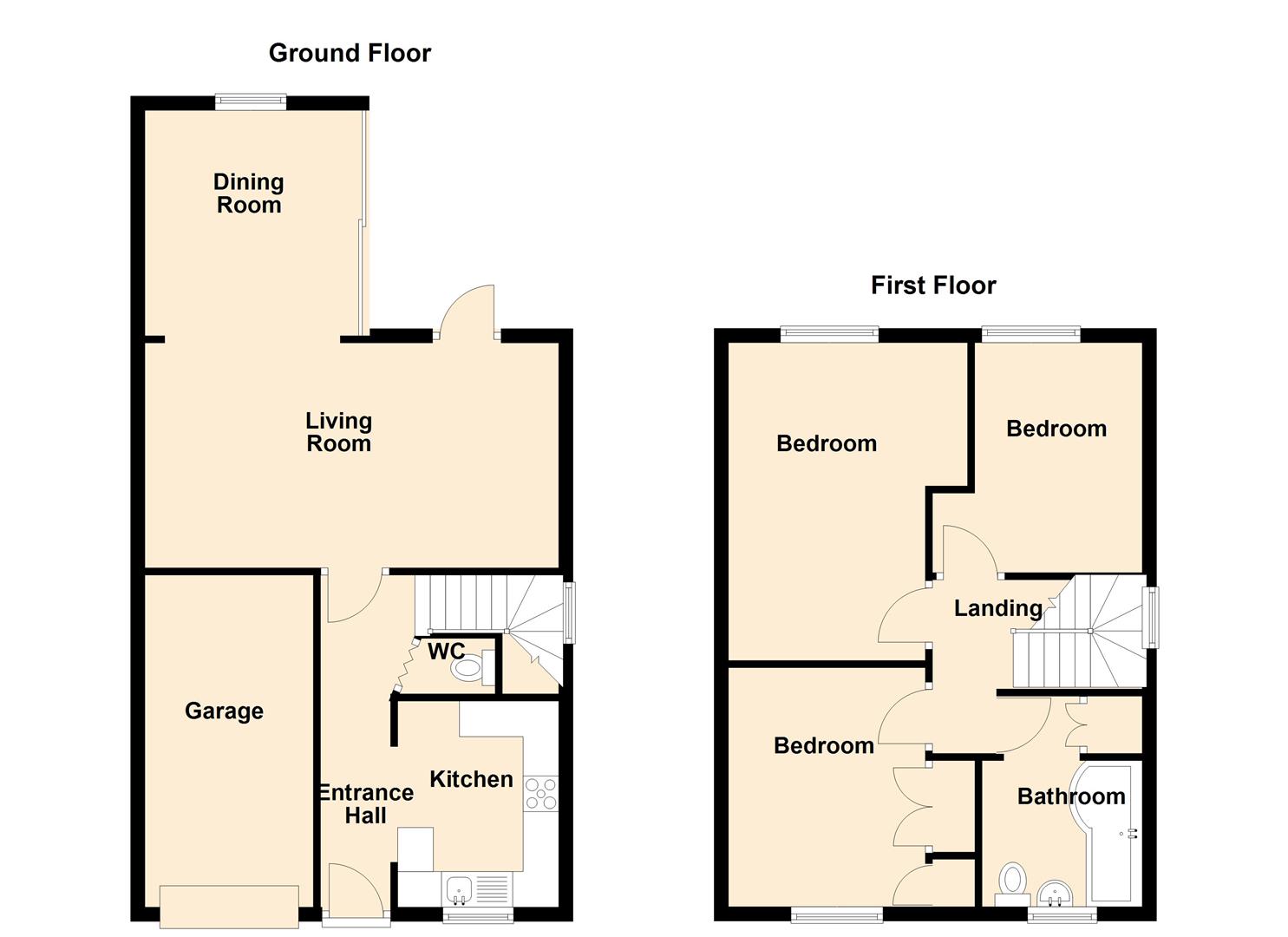 The ground floor boasts a generous living area ideal for relaxing and entertaining, alongside a modern kitchen and convenient cloakroom/WC. Upstairs, you'll find three well-proportioned double bedrooms and a family bathroom, providing ample space for all.