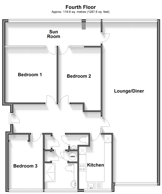 Please refer to the footnote regarding the services and appliances. Room sizes:Entrance HallLounge/Diner: 37'7 x 12'6 (11.46m x 3.81m)Sun Room: 21'1 x 5'5 (6.43m x 1.65m)Kitchen: 12'9 x 7'5 (3.89m x 2.26m)Bedroom 1: 14'6 x 9'8 (4.42m x 2.95m)Bedroom 2: 14'6 x 9'8 (4.42m x 2.95m)Bedroom 3: 12'10 x 7'8 (3.91m x 2.34m)Shower Room: 7'6 x 5'6 (2.29m x 1.68m)CloakroomUndercroft Parking SpaceCommunal Garden