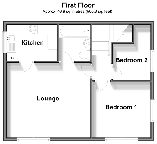 Please refer to the footnote regarding the services and appliances. Room sizes:LandingBedroom 1: 10'4 x 9'10 (3.15m x 3.00m)Bedroom 2: 6'8 x 6'4 (2.03m x 1.93m)BathroomKitchen: 8'10 x 6'4 (2.69m x 1.93m)Lounge: 14'9 x 13'2 (4.50m x 4.02m)Rear GardenGarage- En Block