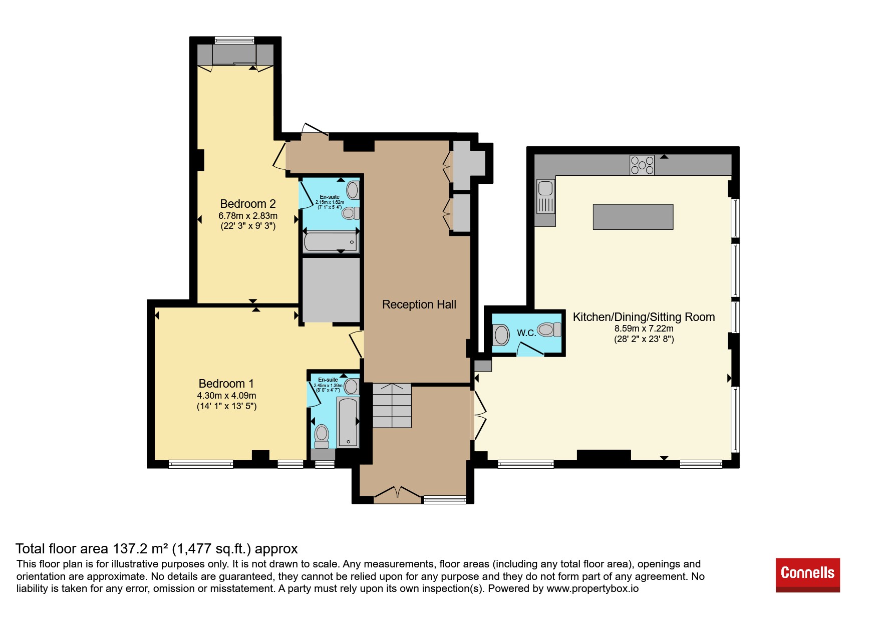 Step inside and be greeted by an atmosphere of refined elegance, where every detail has been thoughtfully curated to create a home of rare distinction. Two sumptuous double bedrooms await; each a private sanctuary complete with its own en-suite bathroom - perfect for moments of tranquillity and indulgence. One bedroom is further adorned with a magnificent walk-in wardrobe, offering abundant space while exuding an air of effortless chic.