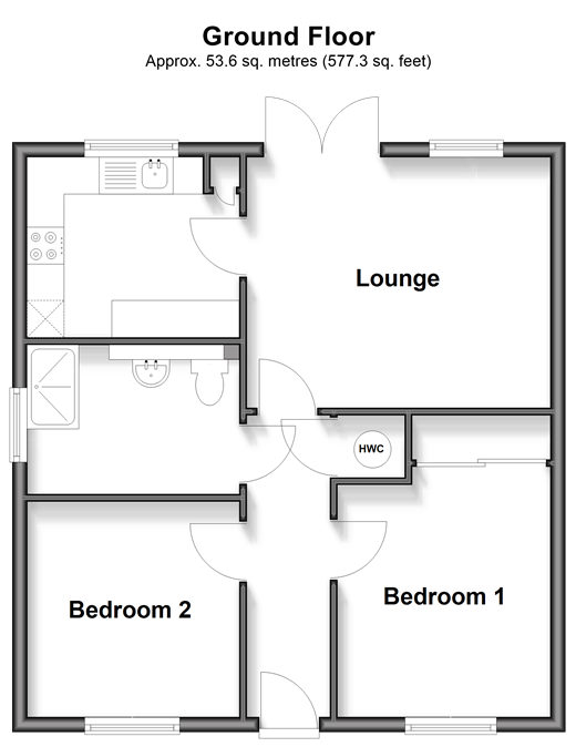 Please refer to the footnote regarding the services and appliances. Room sizes:Entrance HallLounge: 13'5 x 11'3 (4.09m x 3.43m)Kitchen: 9'3 x 7'8 (2.82m x 2.34m)Bedroom 1: 12'10 x 9'2 (3.91m x 2.80m)Bedroom 2: 9'6 x 9'3 (2.90m x 2.82m)Shower Room: 9'3 x 6'5 (2.82m x 1.96m)Off Road ParkingCommunal Gardens