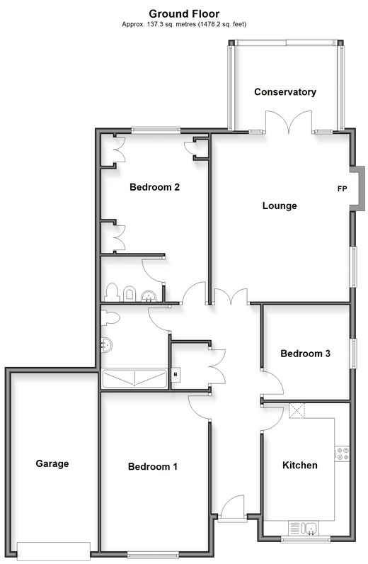 Please refer to the footnote regarding the services and appliances. Room sizes:HallwayLounge: 18'3 x 14'9 (5.57m x 4.50m)Conservatory: 12'6 x 9'4 (3.81m x 2.85m)Kitchen: 14'6 x 9'5 (4.42m x 2.87m)Bedroom 1: 17'0 x 11'4 (5.19m x 3.46m)Bedroom 2: (L-shaped) 12'11 x 11'5 (3.94m x 3.48m) plus 4'5 x 5'4 (1.35m x 1.63m)Ensuite Cloakroom: 6'6 x 4'11 (1.98m x 1.50m)Bedroom 3: 10'4 x 9'5 (3.15m x 2.87m)Wet Room: 9'2 x 7'4 (2.80m x 2.24m)Loft Space: 24'3 x 8'11 (7.40m x 2.72m)Loft Storage Area: 19'2 x 8'10 (5.85m x 2.69m)DrivewayGarageFront GardenRear Garden