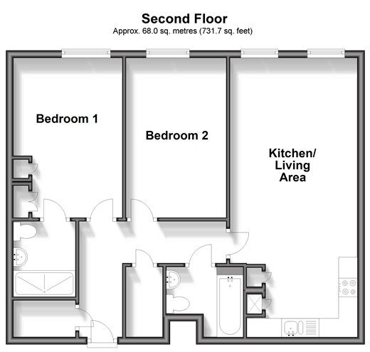 Retreat after a long day with no work to be completed in this second floor apartment. Parking is waiting for you, there's good storage throughout and you can enjoy pretty views over the North Downs. With a complete chain above, you could be calling this home before you know it. Room sizes:Entrance HallKitchen/Living Area: 24'9 x 11'2 (7.55m x 3.41m)Bedroom 1: 14'3 x 9'6 (4.35m x 2.90m)En-Suite Shower RoomBedroom 2Family BathroomAllocated Parking Space