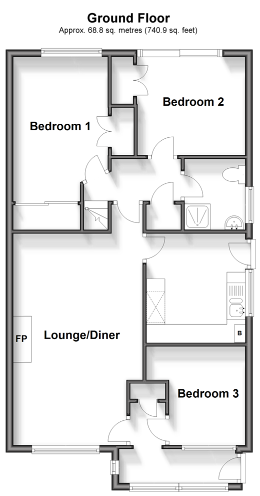 Please refer to the footnote regarding the services and appliances. Room sizes:Kitchen: 9'7 x 8'7 (2.92m x 2.62m)Lounge: 17'9 x 11'5 (5.41m x 3.48m)Bedroom 3: 8'7 x 8'7 (2.62m x 2.62m)Bedroom 1: 13'0 x 8'5 (3.97m x 2.57m)Bedroom 2: 9'6 x 8'7 (2.90m x 2.62m)Shower RoomLoft RoomFront GardenDrivewayRear GardenGarage
