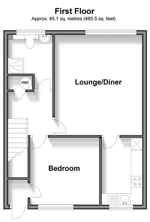 Please refer to the footnote regarding the services and appliances. Room sizes:LandingLounge: 15'2 x 12'9 (4.63m x 3.89m)Kitchen: 10'5 x 6'1 (3.18m x 1.86m)Bedroom 1: 10'1 x 10'1 (3.08m x 3.08m)Shower RoomResidents ParkingCommunal Gardens