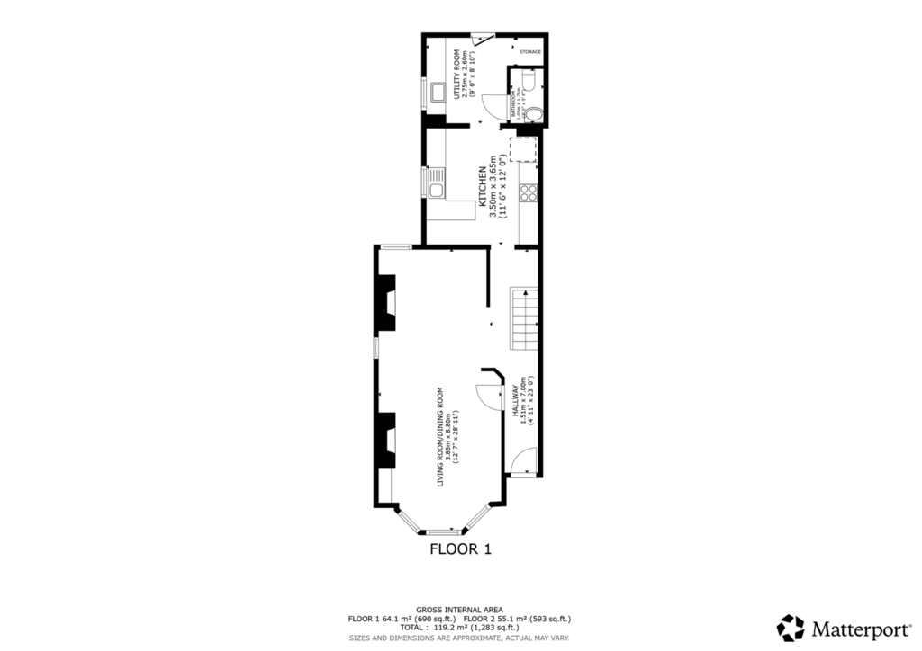 Internally, the property is deceptively spacious and has been maintained to an excellent standard throughout. The ground floor features a generous lounge/diner to the front of the home, bathed in natural light through a bay window and enhanced by the charm of two fireplaces creating a warm and inviting atmosphere. To the rear, the modern kitchen is stylish and functional, seamlessly opening into a bright utility room that provides access to the rear garden. A convenient ground floor WC completes the downstairs accommodation.