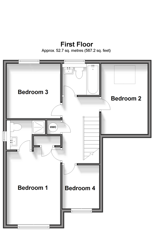 Please refer to the footnote regarding the services and appliances. Room sizes:HallwayLounge: 16'1 x 10'0 (4.91m x 3.05m)Dining Room: 11'1 x 8'0 (3.38m x 2.44m)Kitchen: 11'1 x 7'1 (3.38m x 2.16m)Utility AreaDownstairs ToiletGarageLandingBedroom 1: 13'1 x 9'1 (3.99m x 2.77m)En-suite Shower RoomBedroom 2: 12'1 x 8'1 (3.69m x 2.47m)Bedroom 3: 9'1 x 9'1 (2.77m x 2.77m)Bedroom 4: 8'1 x 6'4 (2.47m x 1.93m)BathroomDrivewayFront GardenRear Garden