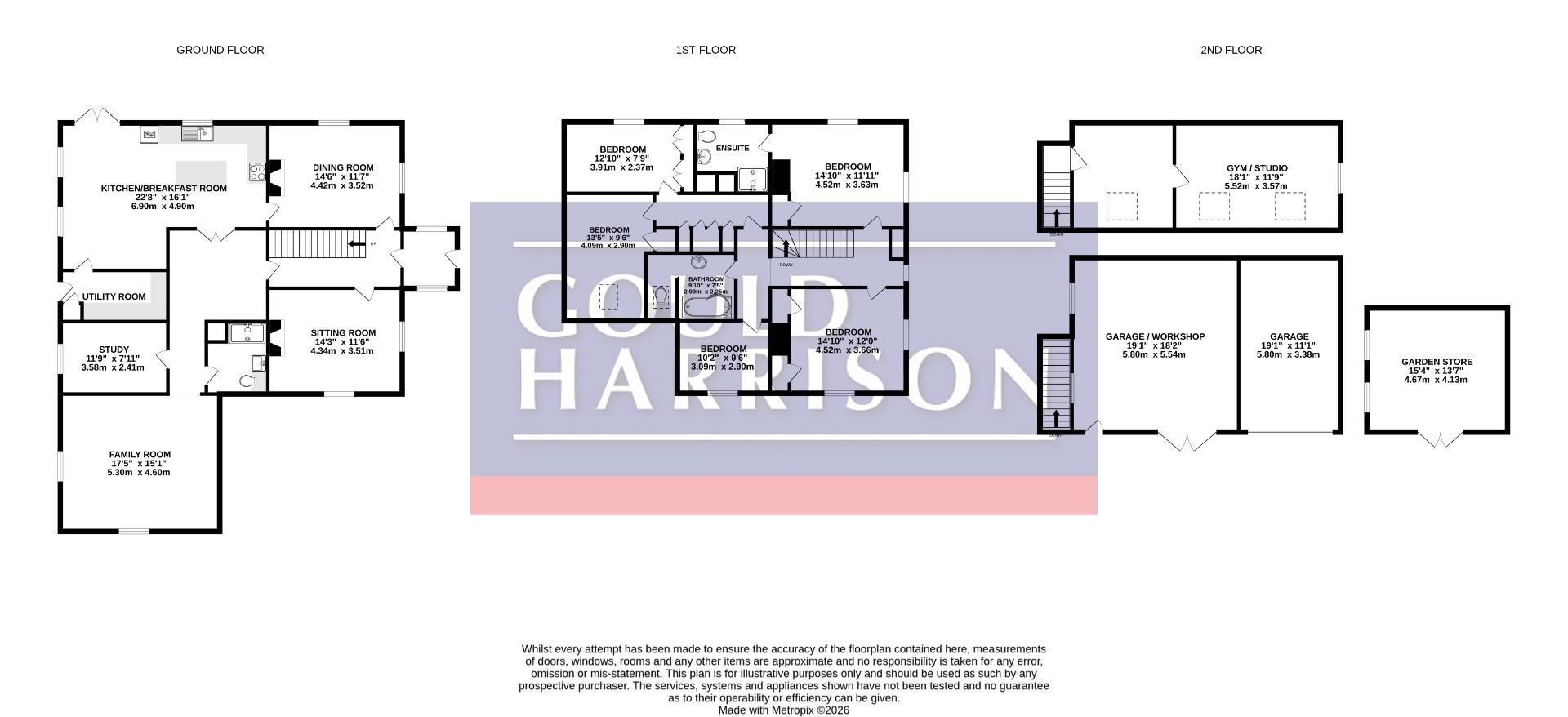 The upper floor provides five bedrooms, en suite and family bathrooms along with lots of convenient storage. The gardens have been beautifully maintained and provide excellent seclusion with detached garages/workshop, gym and brick outbuilding with further potential, accessible via the automated five bar gate.