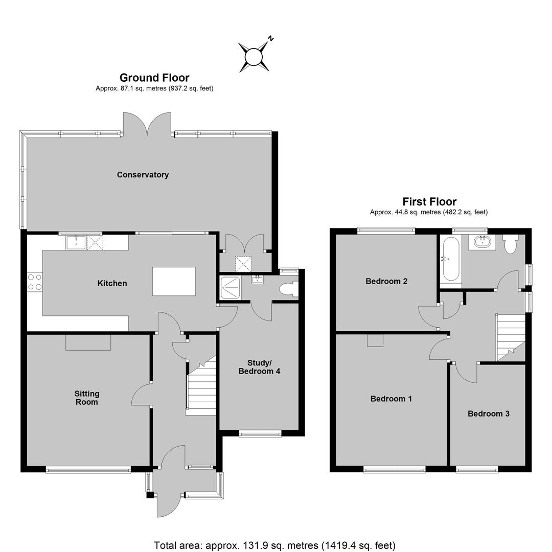 The bright, spacious and versatile accommodation is arranged on the ground floor to provide an entrance porch, an entrance hall, a large sitting room with a wood-burning stove, a contemporary kitchen with sliding doors leading to a conservatory, a utility cupboard, and a study / fourth bedroom with a stylish en-suite shower room. To the first floor, there are three generous bedrooms and a smartly fitted family bathroom.