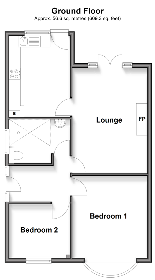 Please refer to the footnote regarding the services and appliances. Room sizes:Entrance HallKitchen: 12'0 x 8'9 (3.66m x 2.67m)Lounge: 15'4 x 11'2 (4.68m x 3.41m)Bedroom 1: 12'1 x 11'0 (3.69m x 3.36m)Bedroom 2: 9'9 x 7'9 (2.97m x 2.36m)BathroomFront and Rear GardensDriveway