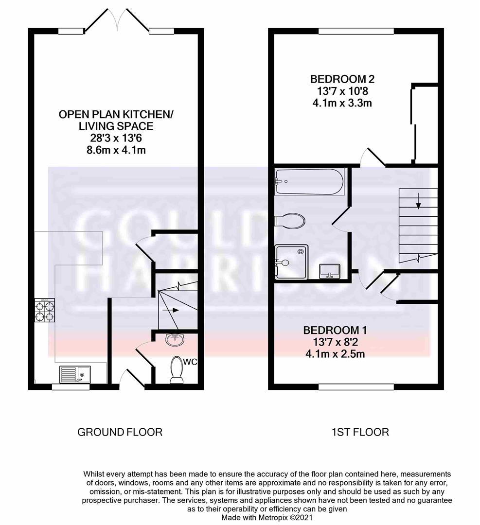 The well appointed accommodation comprises an entrance hall, open plan kitchen/living space with integrated appliances, two double bedrooms and bathroom/WC.