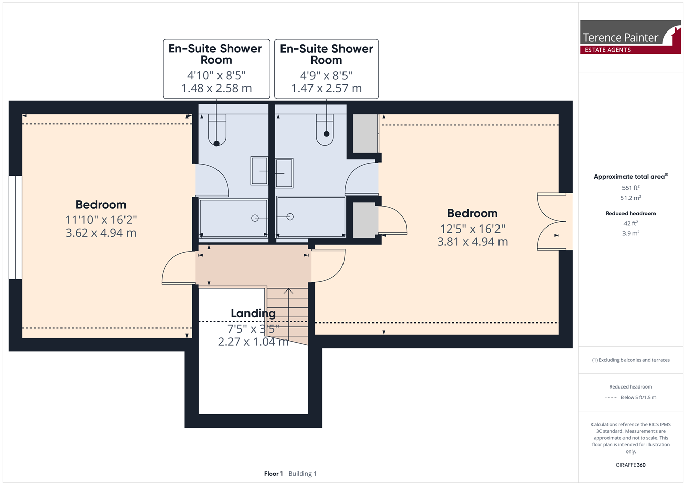 2.57m x 1.47m (8' 5" x 4' 10") There is a Velux window to the side of the property, fully tiled shower cubicle with a fitted rain style shower head with hand shower attachment, wash hand basin inset to a vanity unit, low level w.c, electric shaver point, wall light, towel radiator and part tiled walls and flooring.