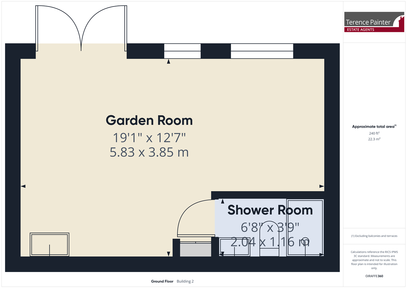 5.83m x 3.85m (19' 2" x 12' 8") This versatile timber-built space offers a multitude of potential uses. It features a well-appointed shower room/W.C and a fitted kitchen, making it ideal for use as a guest suite, home office, studio, or leisure room. The property is equipped with an electric radiator, lighting, and power points for convenience.