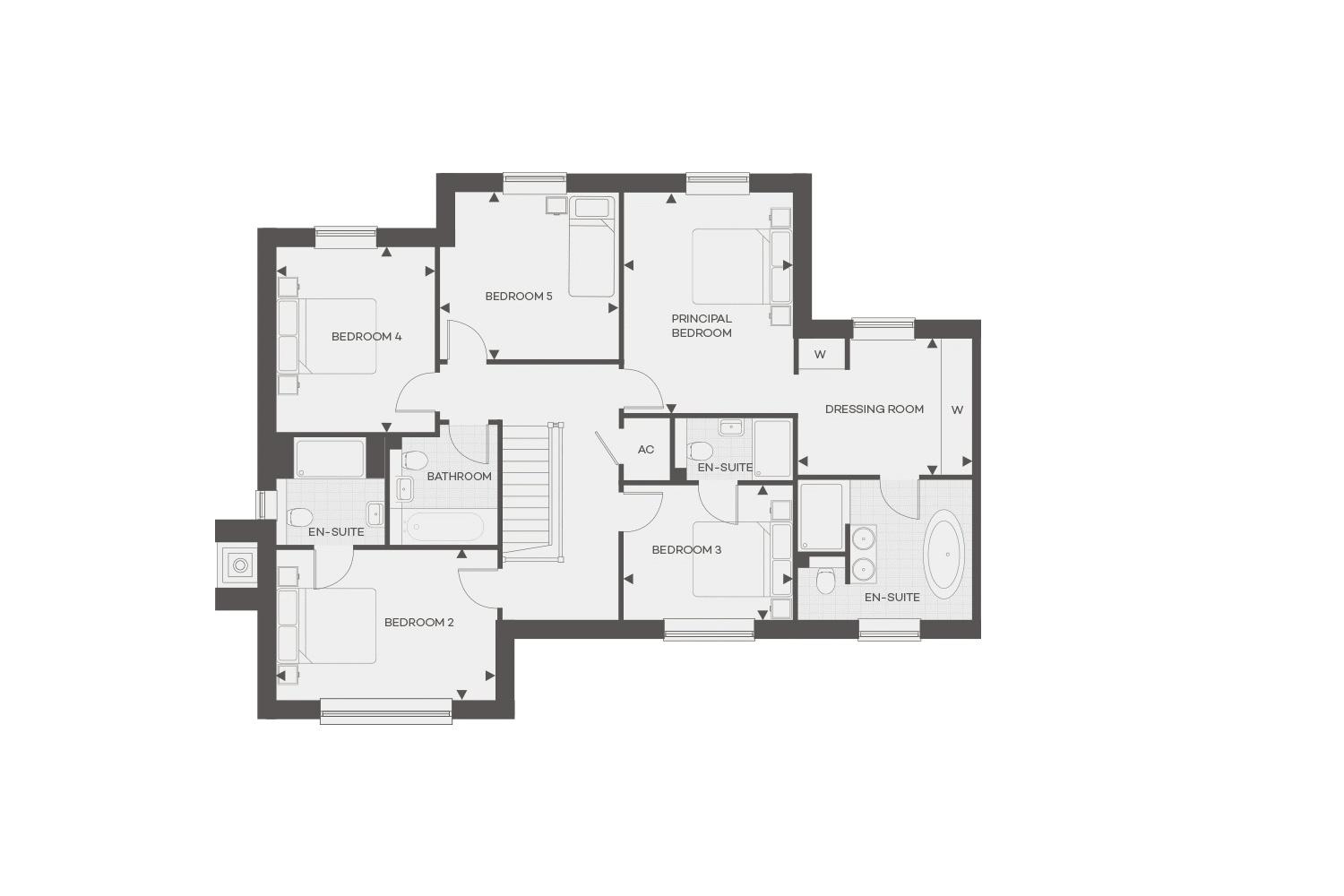 Upstairs, the accommodation includes four double bedrooms and a generous single bedroom. The principal bedroom benefits from its own en-suite and walk-in wardrobe, while bedrooms two and three also enjoy en-suite shower rooms, and the remaining 2 bedrooms are served by a stylish family bathroom.