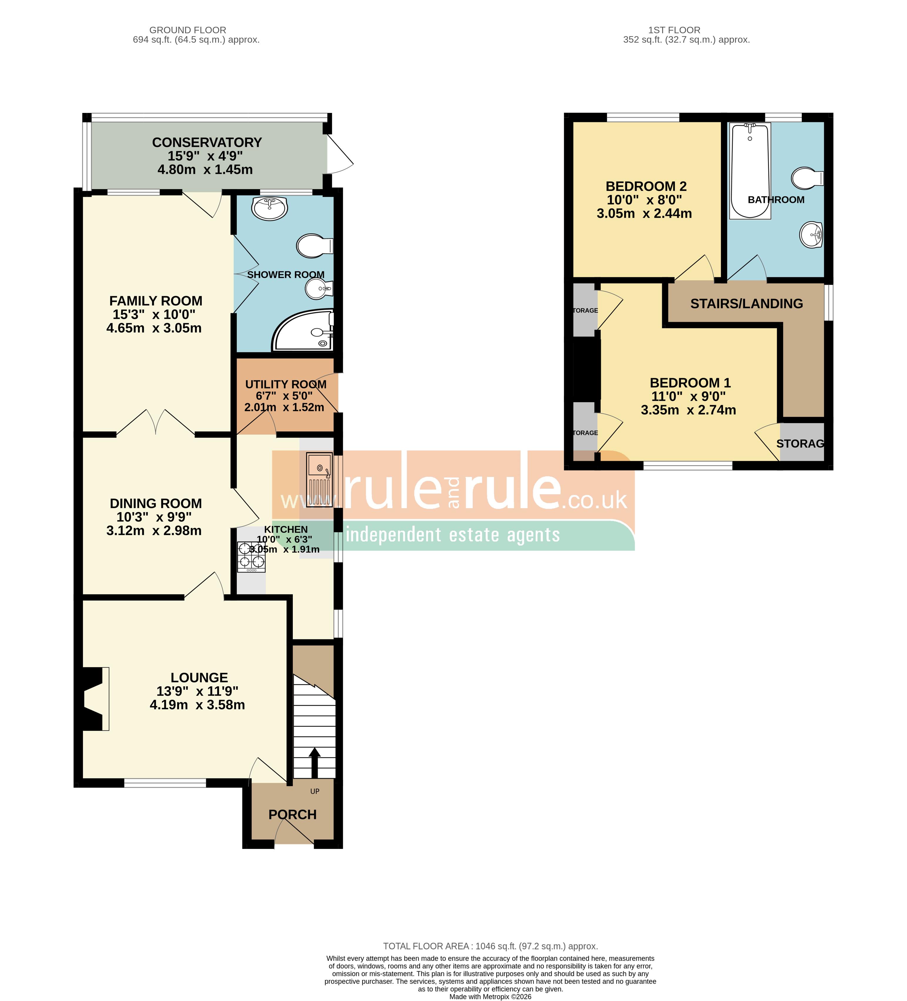 15' 3'' x 10' 3'' (4.64m x 3.12m)