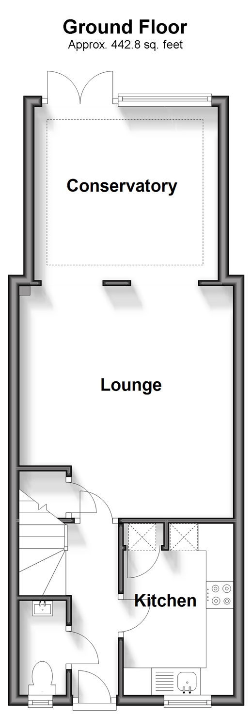 A beautifully presented terraced house with a fantastic conservatory to the rear. Benefiting from an allocated parking space and a private and low maintenance garden backing on to woodland. Just a short walk to local shops, amenities and scenic countryside. Room sizes:Entrance HallDownstairs Cloakroom: 5'1 x 2'1 (1.55m x 0.64m)Kitchen: 10'0 x 6'0 (3.05m x 1.83m)Lounge: 14'0 x 12'1 (4.27m x 3.69m)Conservatory: 11'2 x 10'2 (3.41m x 3.10m)LandingBedroom 1: 12'1 x 9'1 (3.69m x 2.77m)Bedroom 2: 11'1 x 6'1 (3.38m x 1.86m)Bathroom: 6'0 x 5'1 (1.83m x 1.55m)Allocated ParkingFront and Rear Gardens