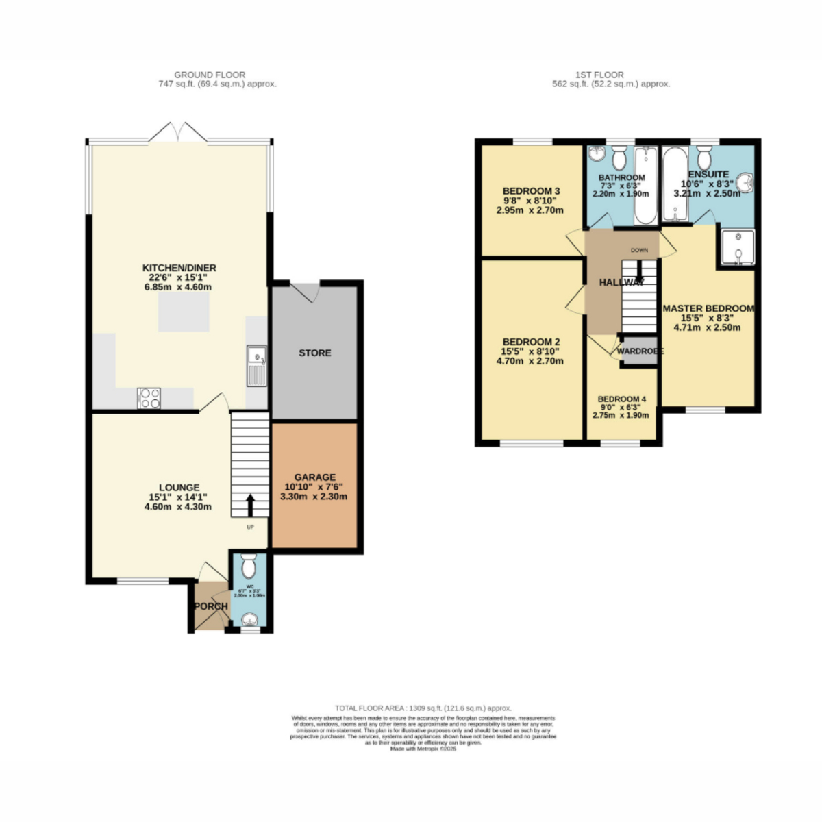 Master Bedroom 15'5" x 8'2" (4.71m x 2.5m)
