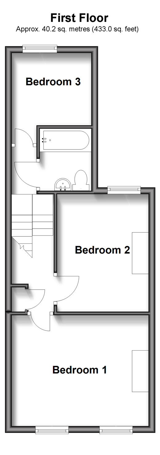 Please refer to the footnote regarding the services and appliances. Room sizes:Entrance HallLounge/Dining Area: 25'0 into bay x 11'5 (7.63m x 3.48m)Kitchen: 9'1 x 7'8 (2.77m x 2.34m)ToiletLandingBedroom 1: 14'1 x 11'2 (4.30m x 3.41m)Bedroom 2: 11'3 x 9'0 (3.43m x 2.75m)Bedroom 3: 8'4 x 7'4 (2.54m x 2.24m)Bathroom: 6'0 x 5'1 (1.83m x 1.55m)Front GardenRear Garden