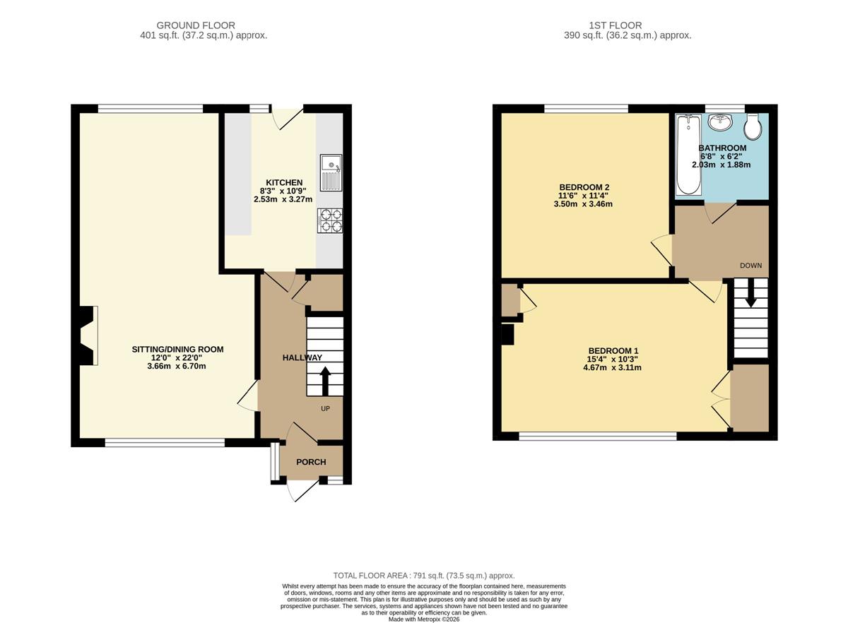 To the first floor are two double bedrooms, with the principal bedroom benefiting from built-in storage cupboards. Completing the accommodation is a tastefully presented bathroom, fitted with a white suite comprising bath with shower over, wash basin and WC.