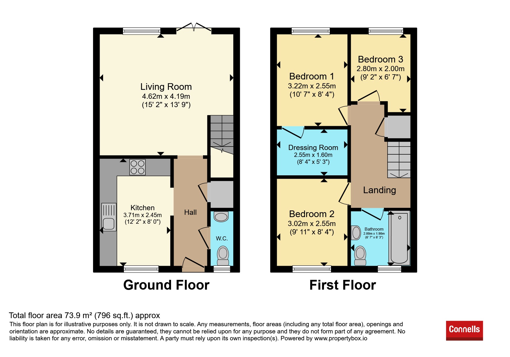 Upstairs, the principle bedroom is spacious and comfortable that has the added benefit of a walk-in wardrobe with plenty of storage space. The other 2 bedrooms are also spacious and comfortable rooms with room for storage. The bathroom is a modern space which is perfect relaxing and unwinding.