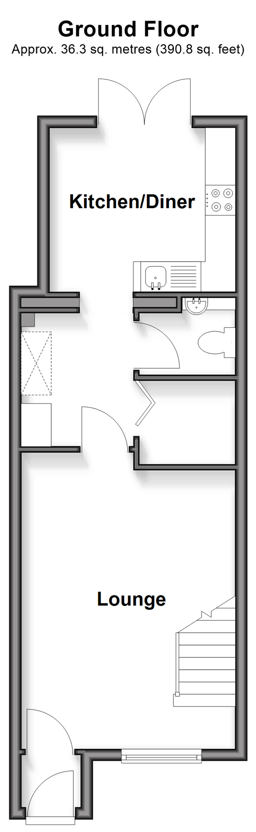 Having been extended, this terraced house boasts generous accommodation over its competition with an open plan kitchen/breakfast room overlooking the rear garden. Off road parking plus a single garage via space to the side of the cul-de-sac. Room sizes:Entrance PorchLounge: 15'8 x 11'1 (4.78m x 3.38m)Walk-Through Utility Area: 6'6 x 5'5 (1.98m x 1.65m)CloakroomKitchen/Diner: 9'9 x 8'6 (2.97m x 2.59m)LandingBedroom 1: 11'4 (3.46m) x 9'1 (2.77m) narrowing to 7'7 (2.31m)Bedroom 2: 7'9 x 6'1 (2.36m x 1.86m)BathroomRear GardenFront GardenOff Road Parking For 2 Cars