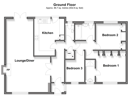 Rarely available, this detached bungalow with garage and off-road parking is positioned on a quiet cul-de-sac in a sought after location. Occupying a flat plot this is perfect for buyers looking for single storey accommodation. Room sizes:HallwayLounge/Diner: 25'0 x 10'4 (7.63m x 3.15m)Kitchen: 12'5 x 10'4 (3.79m x 3.15m)Cloakroom: 6'4 x 3'5 (1.93m x 1.04m)Bedroom 1: 11'5 x 9'10 (3.48m x 3.00m)En-Suite Shower Room: 6'9 x 2'9 (2.06m x 0.84m)Bedroom 2: 9'6 x 8'7 (2.90m x 2.62m)Bedroom 3: 9'10 x 6'6 (3.00m x 1.98m)Bathroom: 6'9 x 6'4 (2.06m x 1.93m)Rear GardenGarage and Off-Road Parking