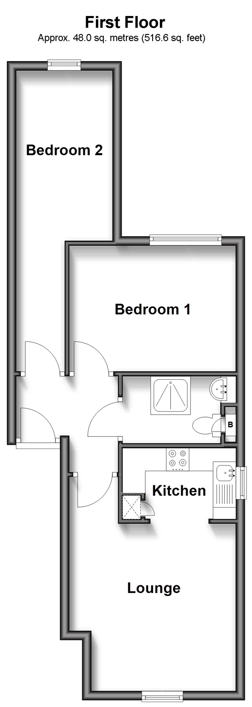 Please refer to the footnote regarding the services and appliances. Room sizes:Entrance HallwayBedroom 2: 22'1 x 7'7 (6.74m x 2.31m)Bedroom 1: 12'6 x 9'10 (3.81m x 3.00m)Shower Room: 8'3 x 4'7 (2.52m x 1.40m)Lounge: 11'9 x 11'6 (3.58m x 3.51m)Kitchen: 8'2 x 4'9 (2.49m x 1.45m)Resident Parking