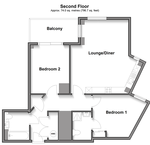 Discover this beautifully presented second-floor apartment, under two years old, offering modern living in a gated community. With an impressive long lease of nearly 1,000 years, this property combines peace of mind with style and convenience. The property benefits from a balcony which is accessible from the bedroom and the living room, it brings in tons of light, which is made even better, as the apartment is raised above the town centre giving you unencumbered views. Ideal for first time buyers or someone looking to downsize and needing an easier life. Room sizes:Entrance HallLounge/Diner/Kitchen: 19'1 x 16'2 (5.82m x 4.93m)Bedroom 1: 11'4 x 11'1 (3.46m x 3.38m)En-suite Shower RoomBedroom 2: 12'6 x 9'9 (3.81m x 2.97m)BalconyAllocated Parking