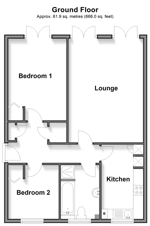 Please refer to the footnote regarding the services and appliances. Room sizes:HallwayBedroom 1: 13'5 x 9'5 (4.09m x 2.87m)Bedroom 2: 9'0 x 8'4 (2.75m x 2.54m)Lounge: 16'8 x 12'7 (5.08m x 3.84m)BathroomKitchen: 12'5 x 7'0 (3.79m x 2.14m)Seating AreaAllocated Parking