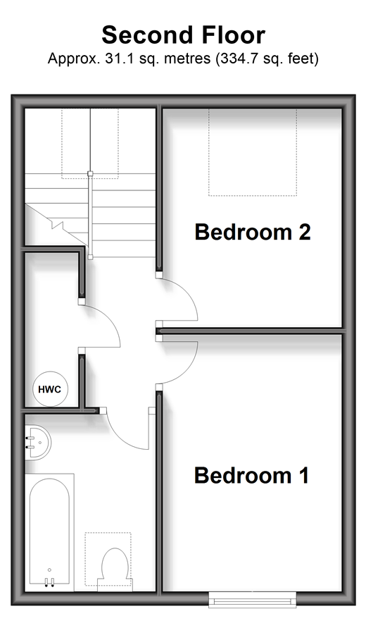 Please refer to the footnote regarding the services and appliances. Room sizes:Entrance HallCloakroomLandingLounge/Diner: 14'8 x 12'0 (4.47m x 3.66m)Kitchen/Breakfast Room: 10'3 x 8'4 (3.13m x 2.54m)LandingBedroom 1: 11'5 x 8'4 (3.48m x 2.54m)Bedroom 2: 10'7 x 8'5 (3.23m x 2.57m)Bathroom: 7'9 x 5'11 (2.36m x 1.80m)Off Road ParkingIntegral Garage